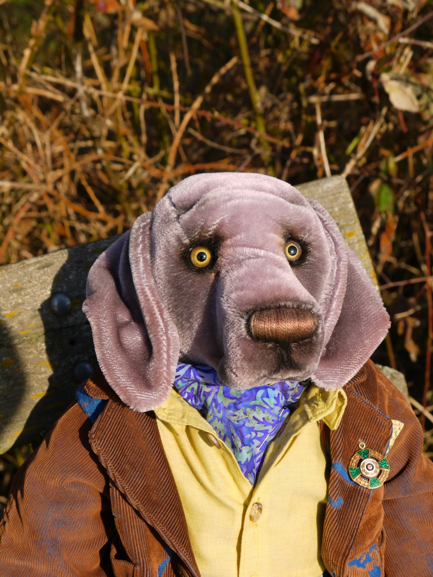 Sein Fell ist aus grauem Schulte Mohair.